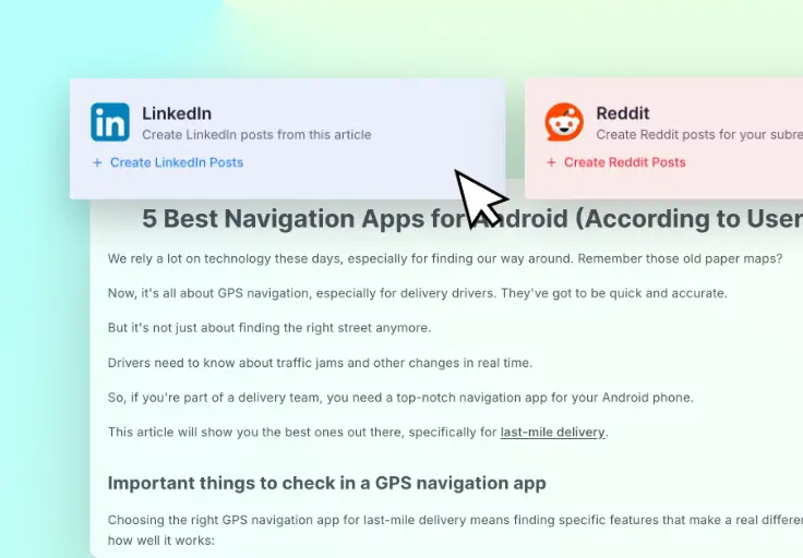 Repurpose articles into LinkedIn posts, Reddit posts, newsletters, lead magnets, and more.