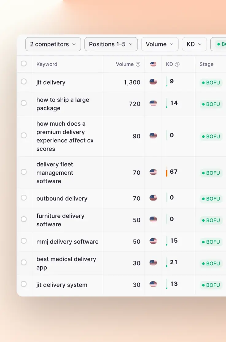 Track your and your competitors' keyword positions across funnel stages and topics.