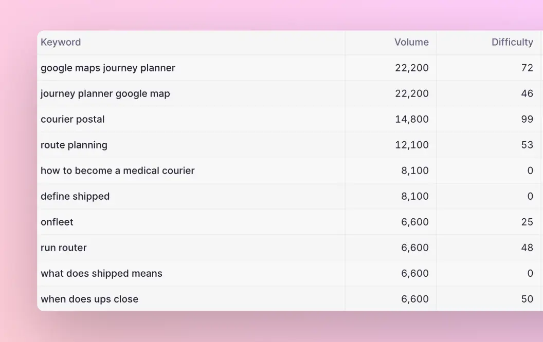 Identify keywords where your competitors are ranking but you're not, and see actionable insights on how to create winning content in minutes.