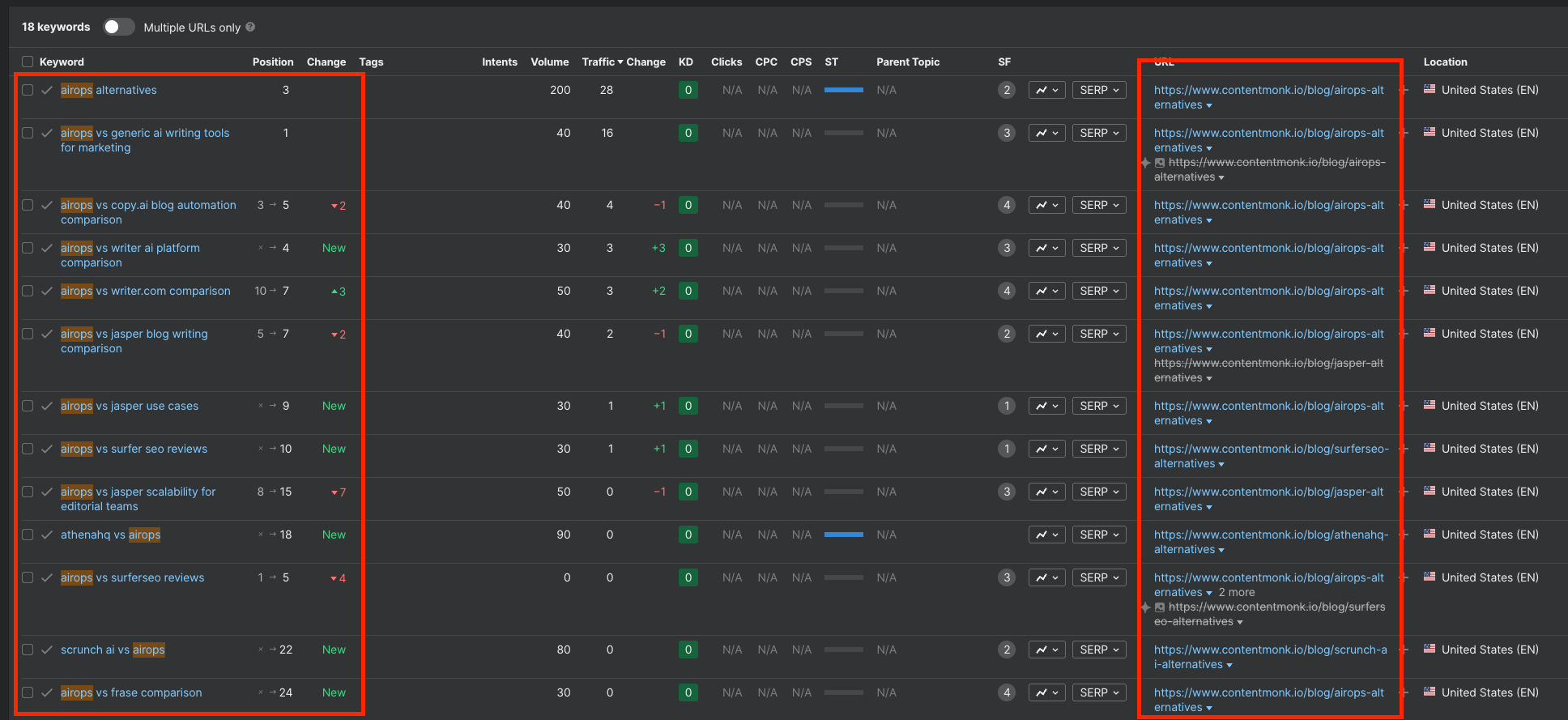 The same as we did here with our article on the best AirOps alternatives. As you can notice, one article is ranking for 15+ different keywords: