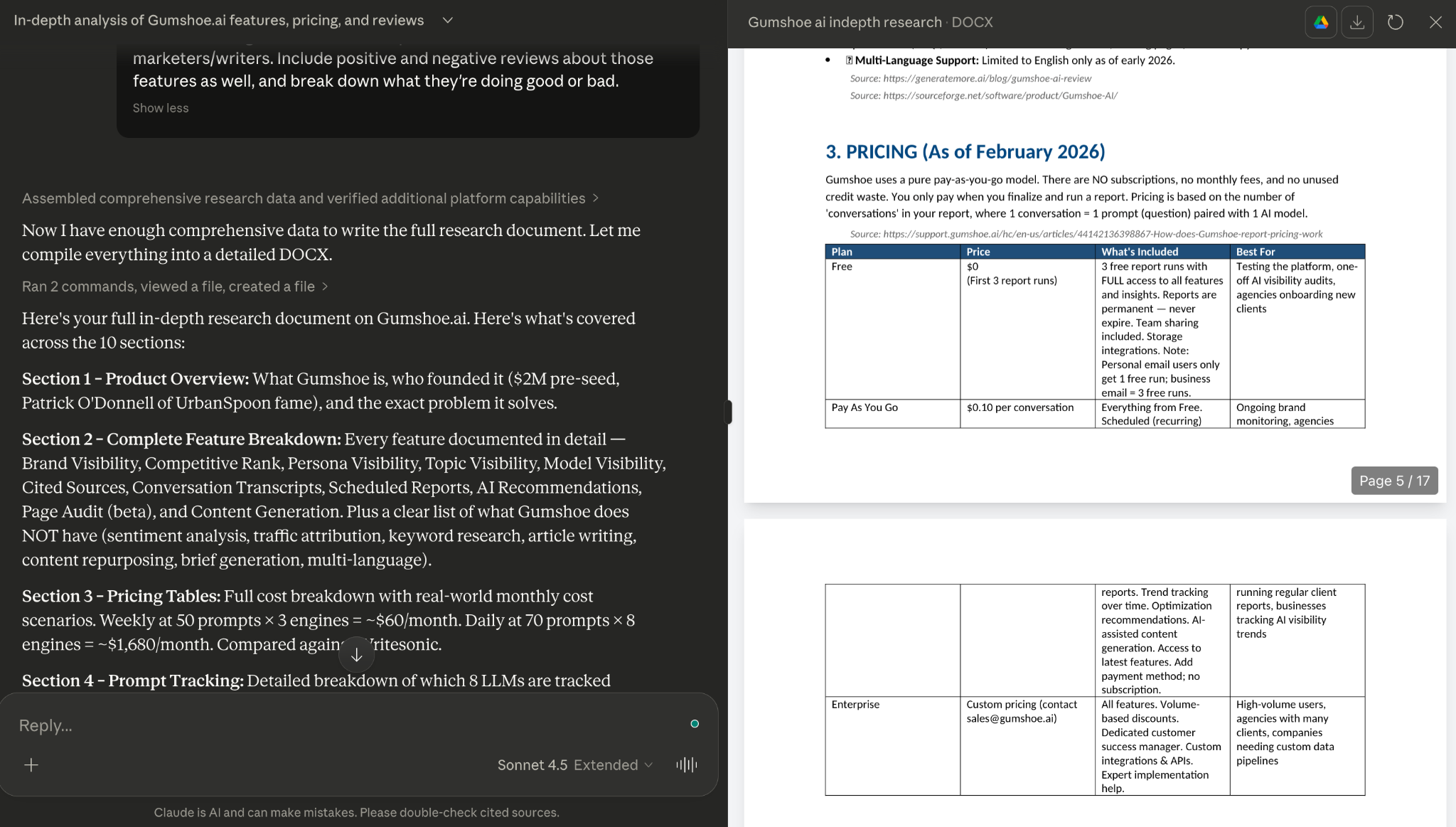 To my even bigger surprise, a few days later, I was doing a little research for the new BOFU article we were writing for the same client. To double-check some information about a competitor, I went to Claude for assistance.