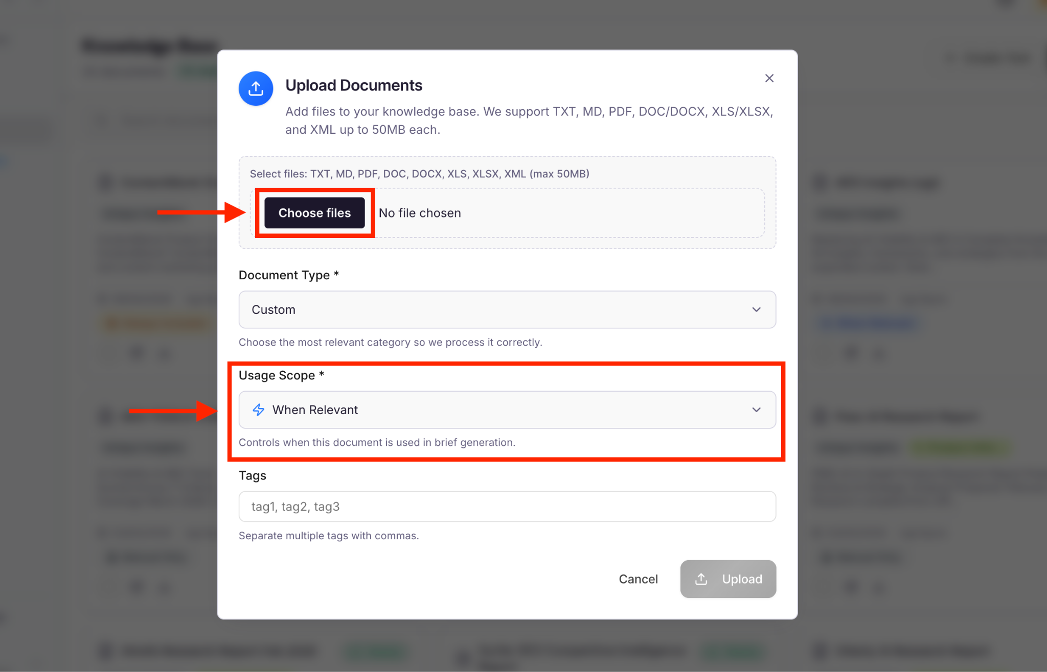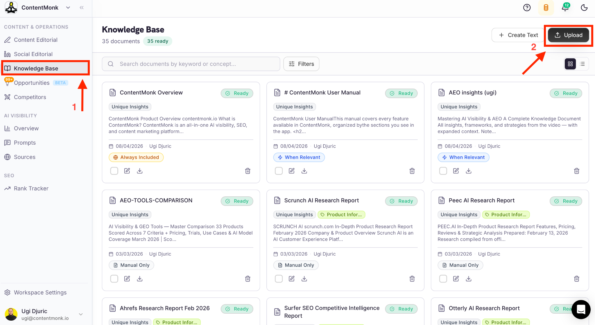 - Upload all relevant documents to ContentMonk Knowledge Base
