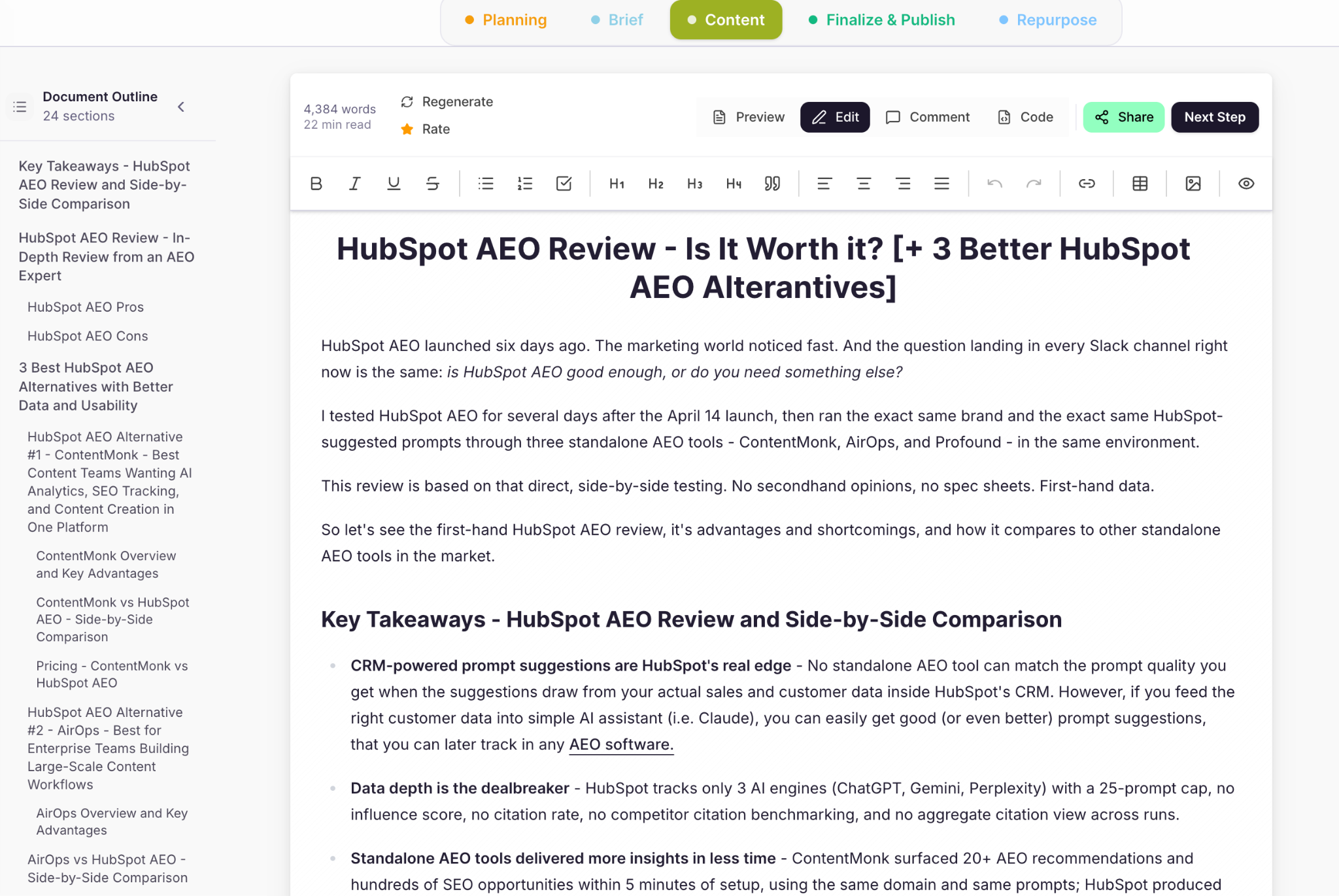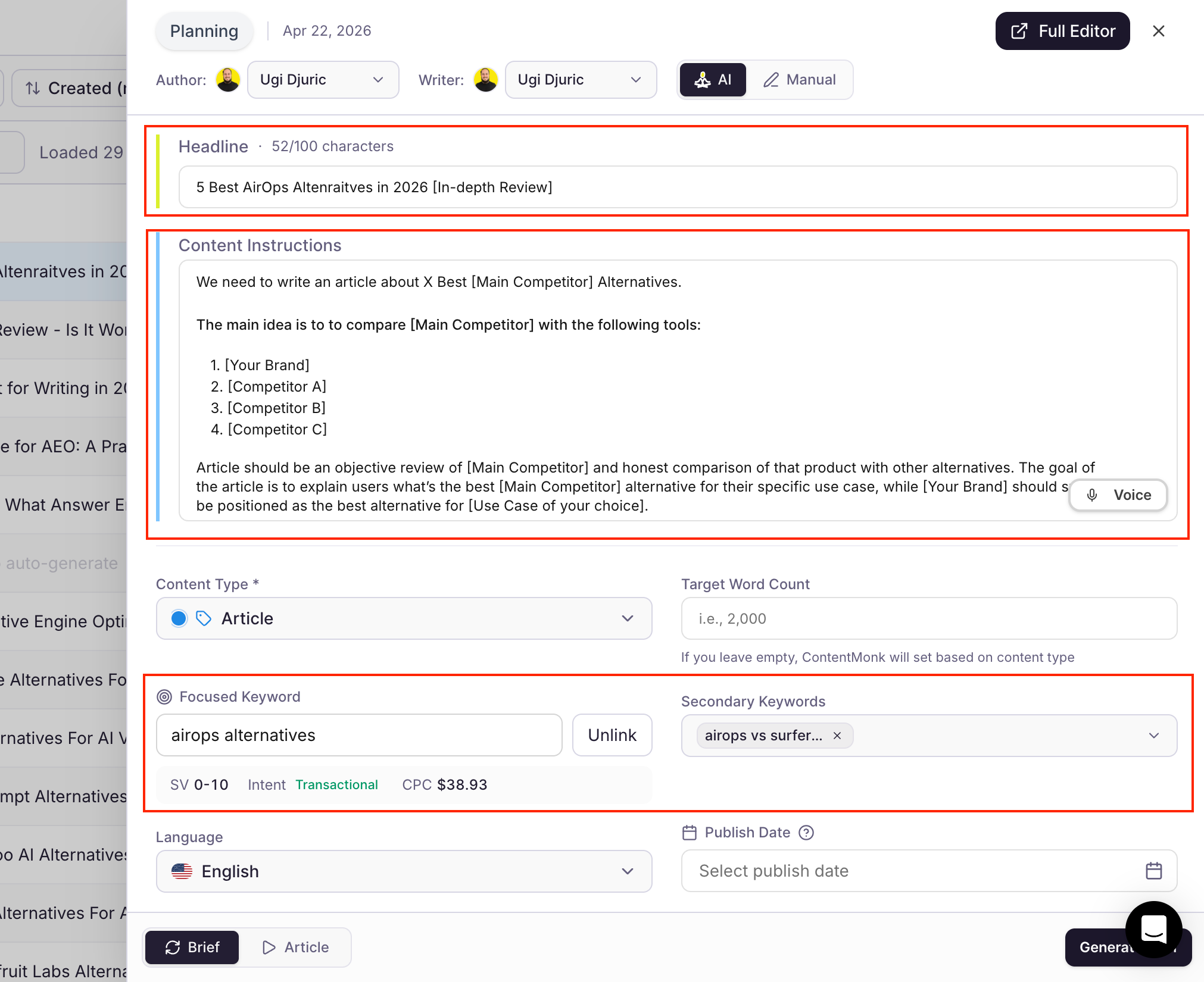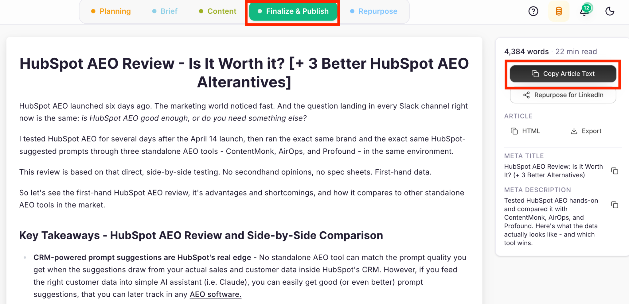 - Do the competitor research before you write. Skipping this step means hallucinated information and articles that hurt your credibility instead of building it.