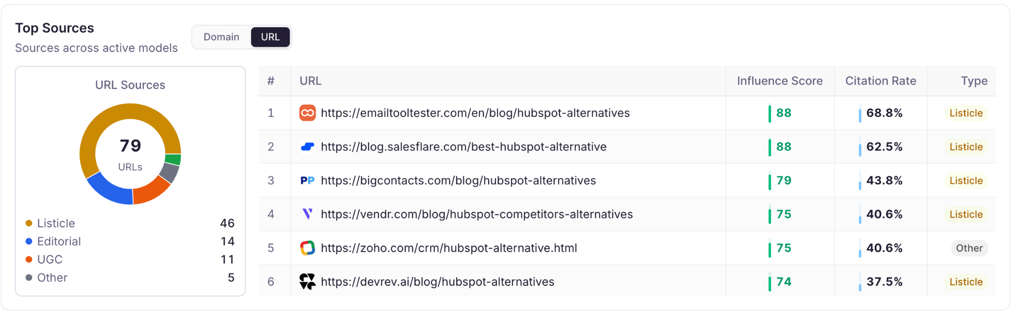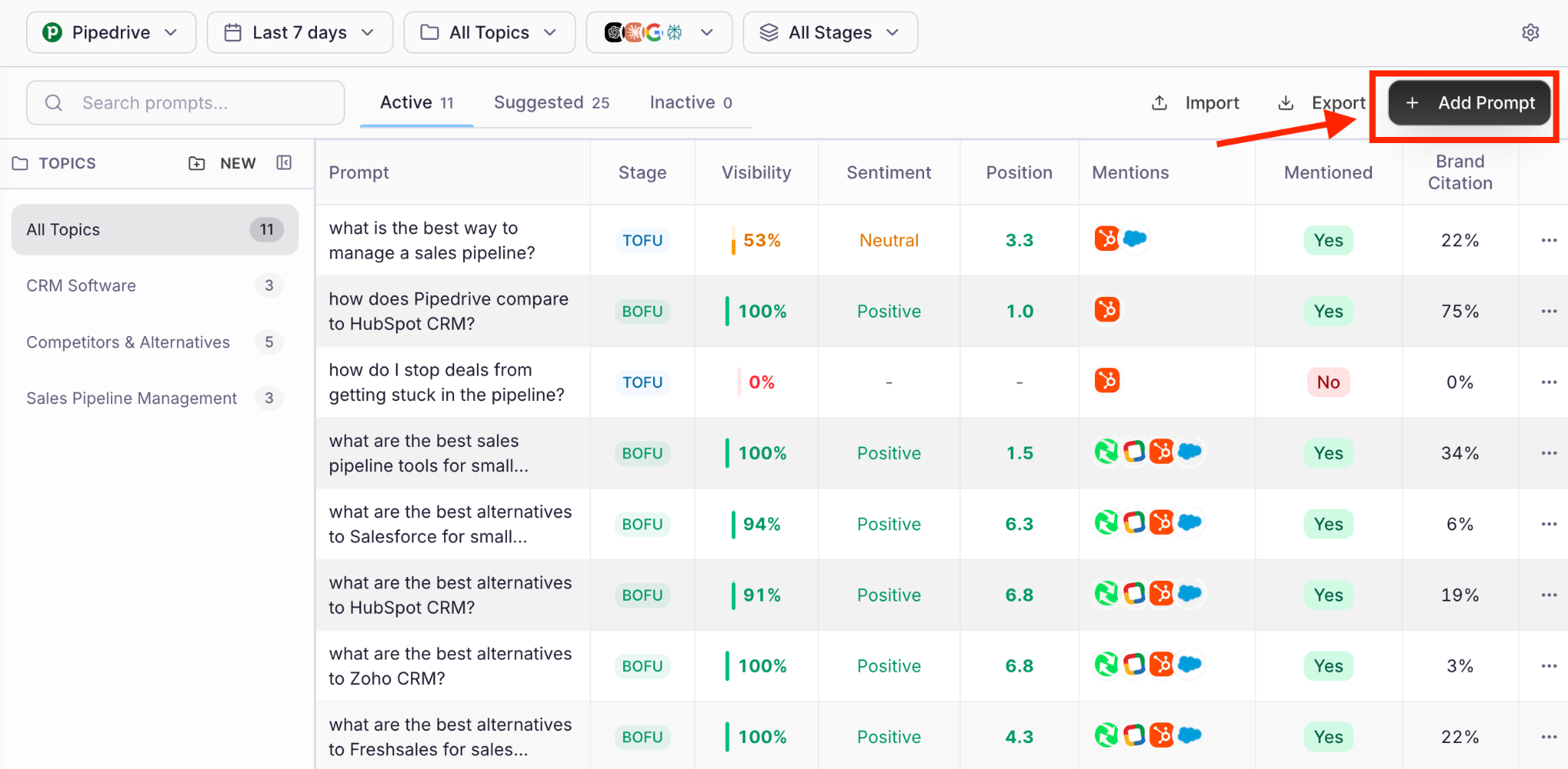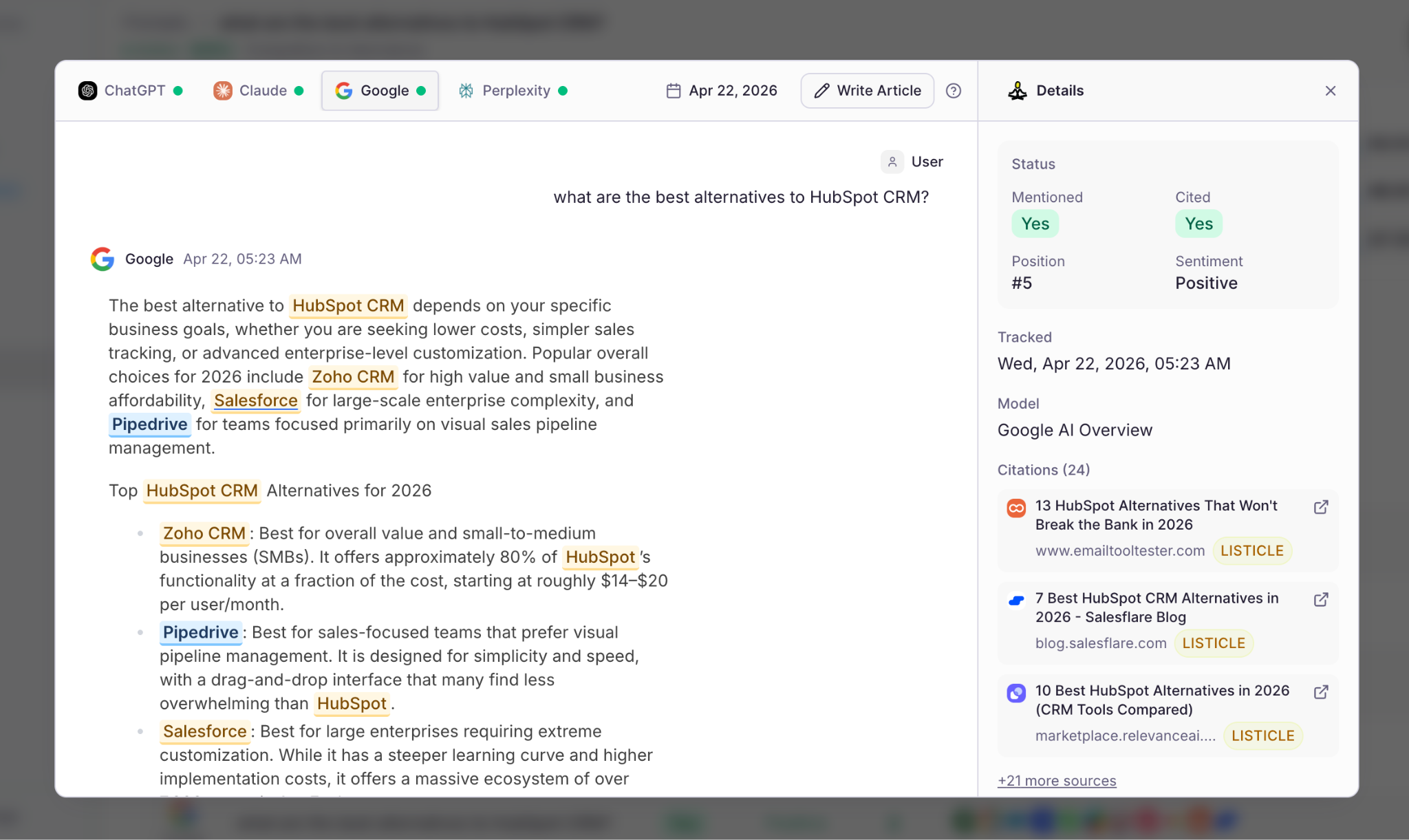 In practice, if you wrote an article on “5 Best HubSpot alternatives”, the prompts to track will be: “What’s the best HubSpot alternative” or “What’s the best HubSpot alternative for SMBs”.