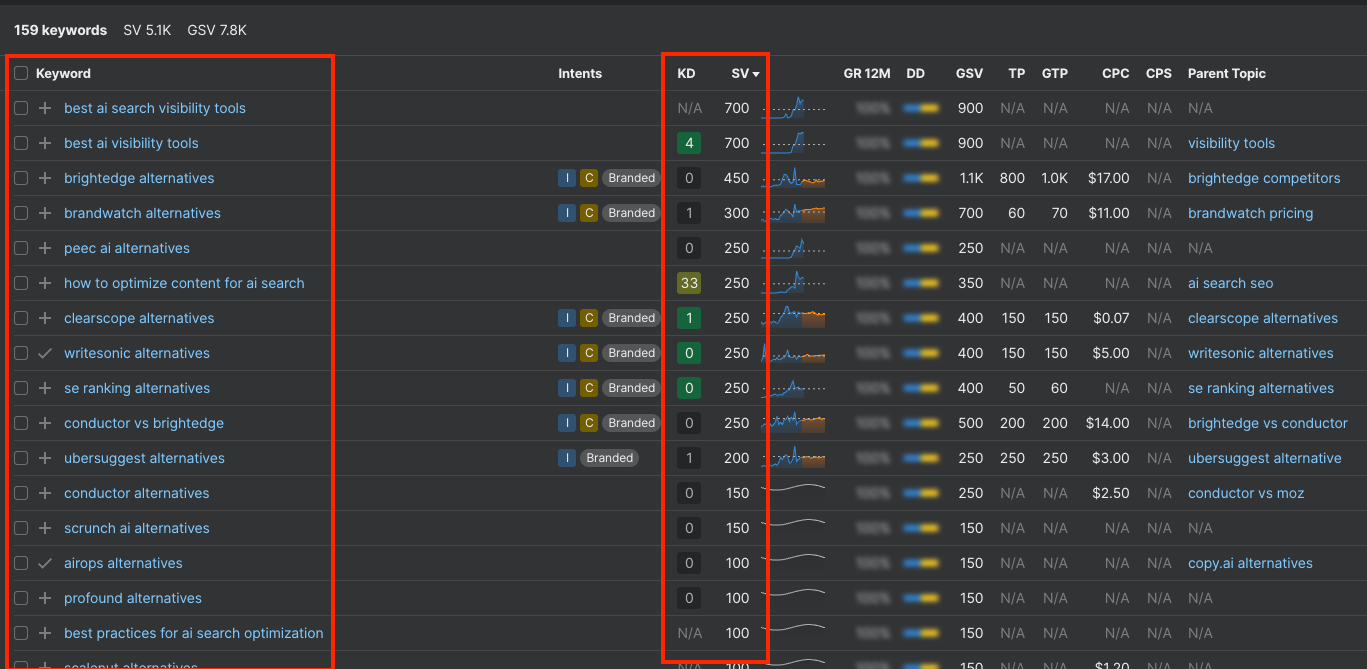 Prioritize keywords with the biggest volume and lowest difficulty.