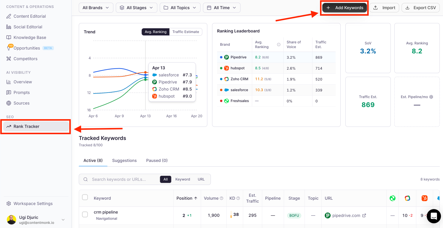 - Start tracking your AI visibility and Google rankings inside ContentMonk